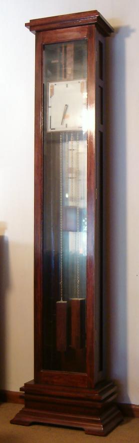 It has an Hermle movement, with all else designed and built from scratch. The Frank Lloyd Wright influence is obvious. the Baby Grand