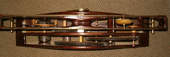It utilizes a rolling “plinth” instead of a ball. I tried several times - unsuccessfully - to cut a typical Congreve zig-zag ball track. It has a 60-second period (30 seconds to roll one direction). The sharp-pointed axle self-centers, and trips the escape arms at each end of the track.