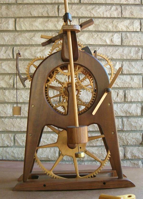 I’ve built several spring-powered clocks (let’s say “tried to build…”), but this is one of the few successful ones. The secret is that the spring doesn’t power the escape - all it has to do is rewind the remontoire - so it doesn’t matter that it rewinds ‘quickly’ when fully wound, and ‘s-l-o-w-l-y’ at the end. The escape gets perfectly constant power via the remontoire, and this clock can be adjusted to keep excellent time.