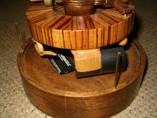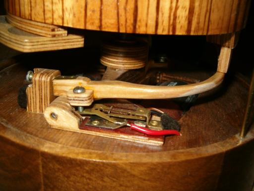 It works somewhat like an ATO clock: a switch, activated by the pendulum, energizes an electromagnet at just the right time to provide the impulse that keeps it going. (The black semi-circular part in the middle photo is a piece of steel, attached to the pendulum. - I couldn’t find any magnetic wood!)